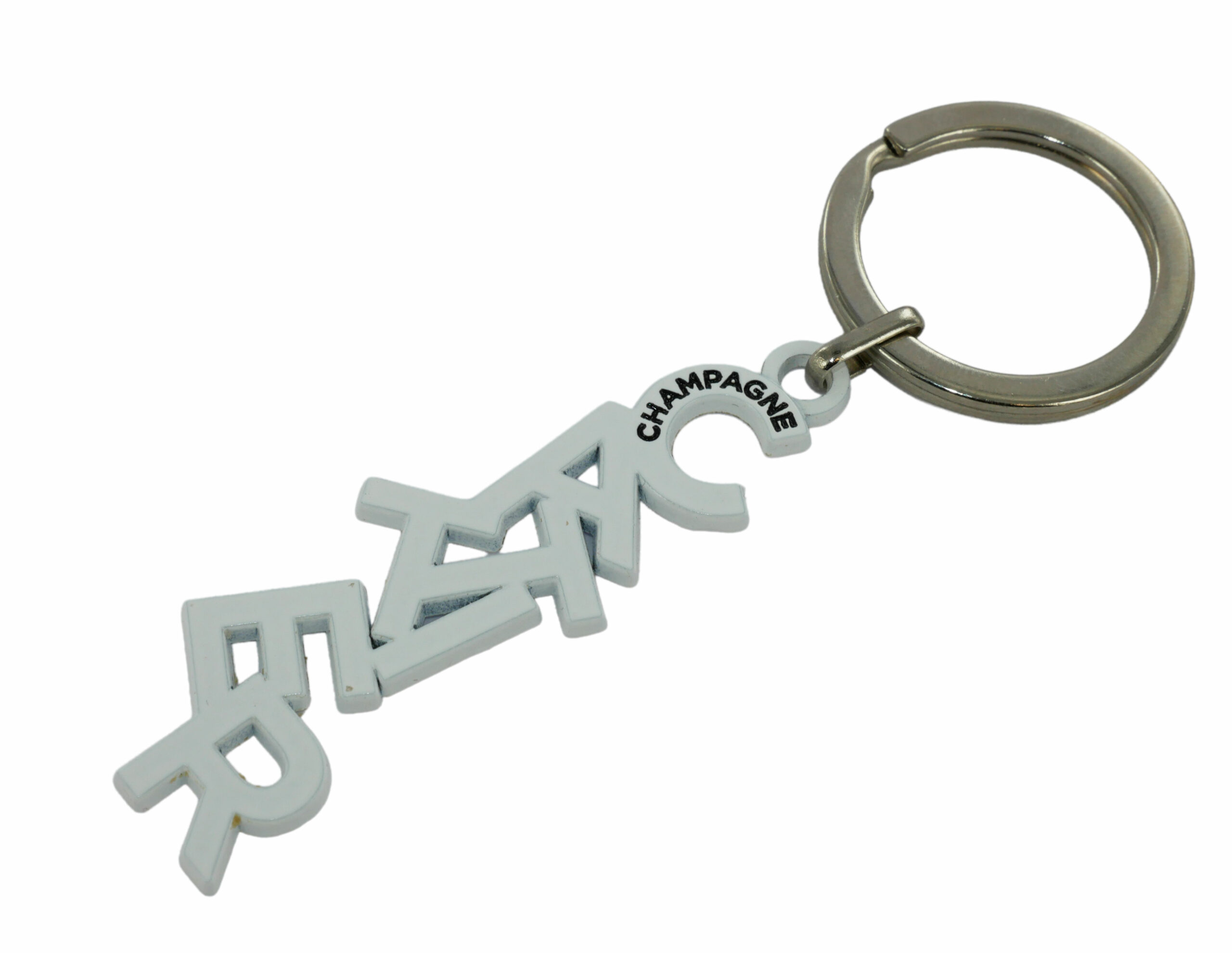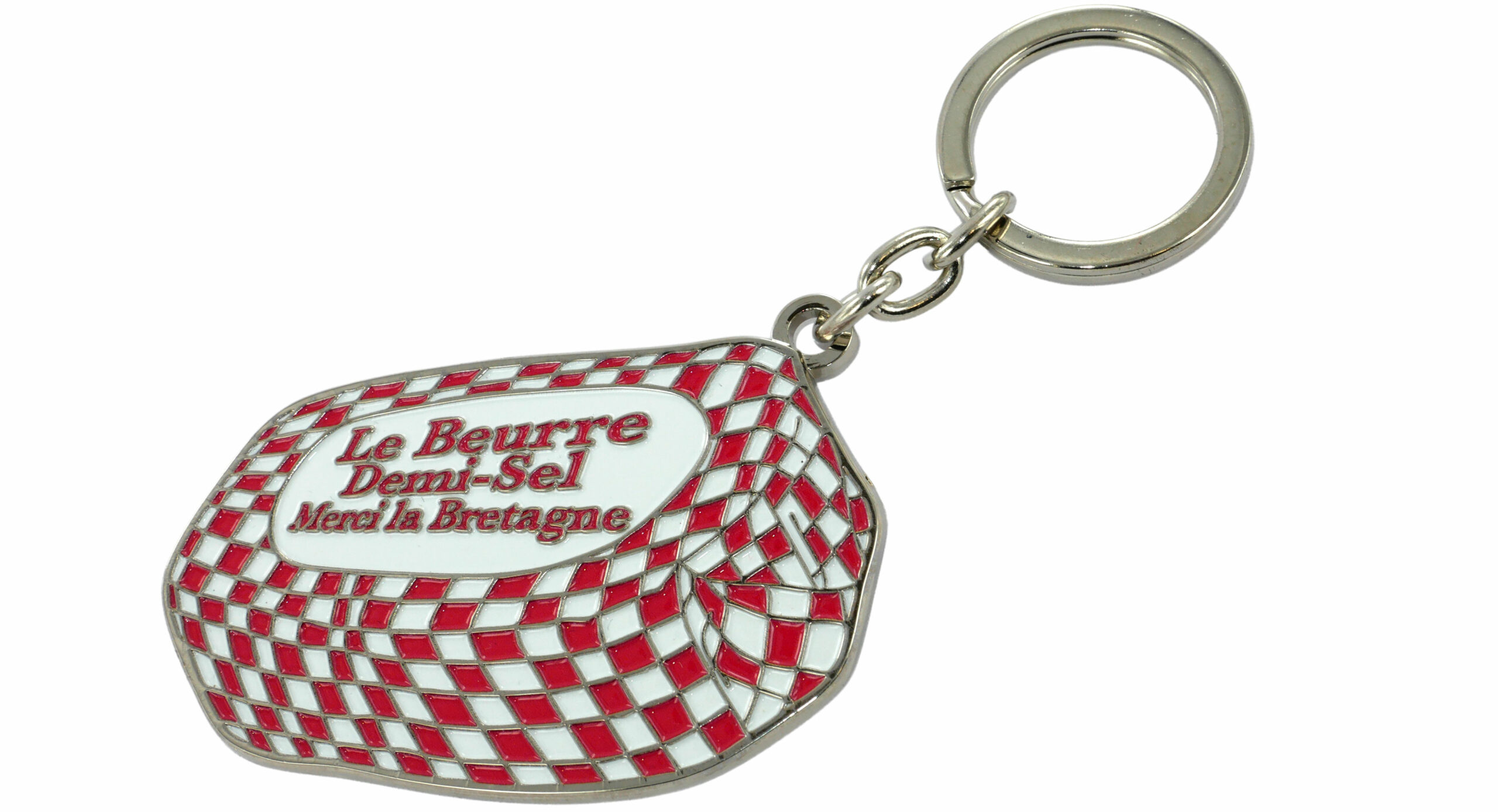 Porte-Clés émaillé Dimensions 70 X 2 mm Découpé à la forme. Finition chromé brillant. Porte-Clés Métal laqué 50 X 2 mm Découpé et évidé. Laqué 1 couleur + impression numérique. Porte-Clés Métal 3D Dimensions 30 x 10 mm Dimètre 3 cm Forme boîte 1 cm d’épaisseur. 2 Coques évidées polymérisées. Dorure + Émail. Porte-Clés Métal 2 Tournants Dimensions 40 x 2 mm 50 Grs. 3 disques tournant. Logo relief doré brillant sur fond doré mat.